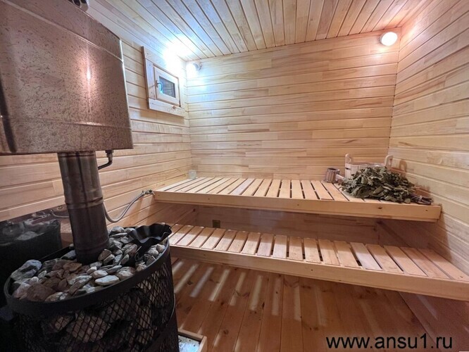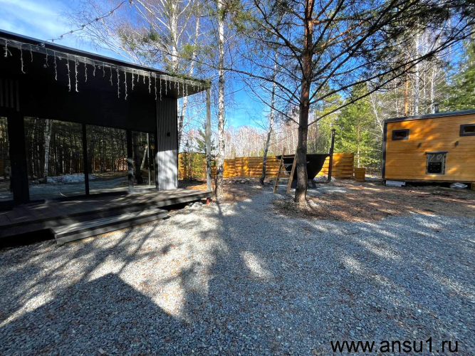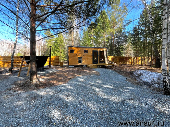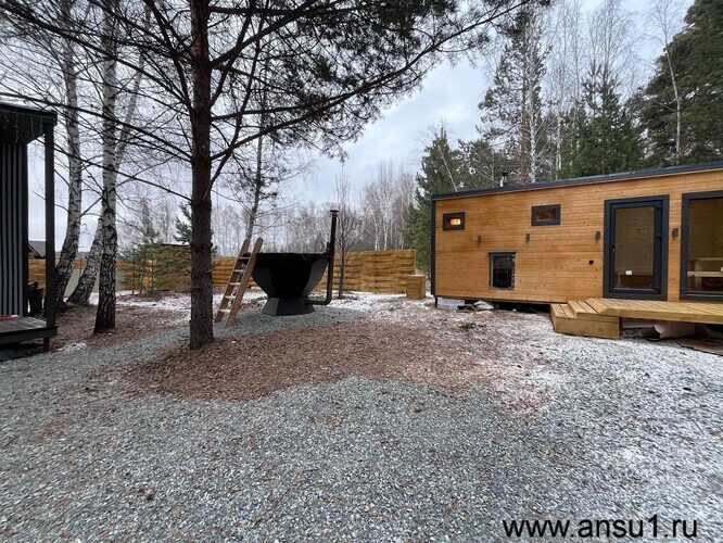 Здесь уже есть все для незабываемого отдыха: баня на дровах, которая придаст истинное расслабление, а после нее – главное украшение – современный чан для купания, полностью из нержавеющей стали, где так приятно проводить время под звездным небом.
