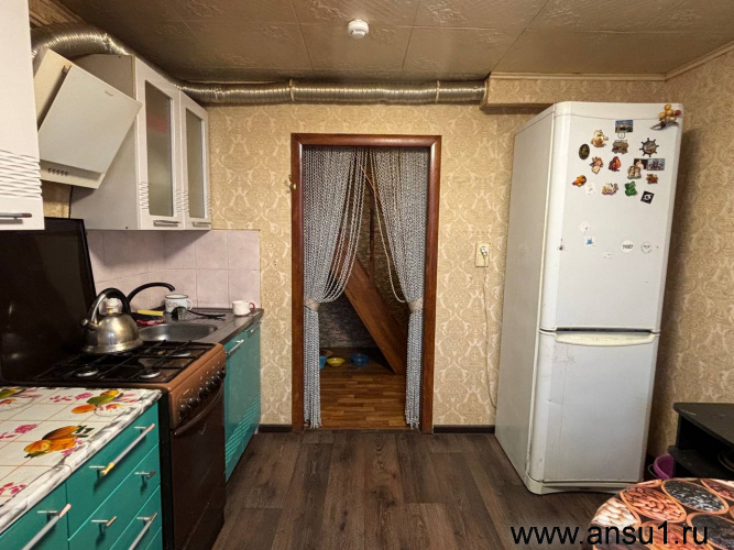 - 1 этаж: гостиная с двумя большими окнами, кухня с газовой плитой, две комнаты окнами во двор, санузел с душевой кабинкой, деревянная лестница на второй этаж, котельная, веранда-беседка.