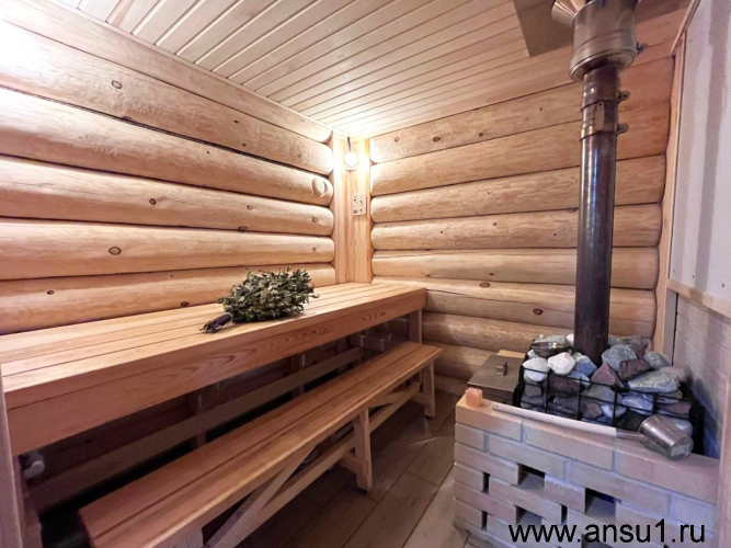 Внутри бани разделение на зоны. Отдельная парилка, душевая с санузлом, и конечно, зона отдыха, вы можете обустроить по своему вкусу, от книжного уголка до спорт-бара!